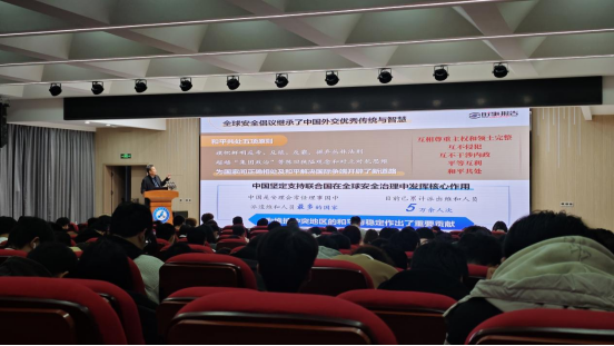 课堂上,闫海军结合当前复杂多变的国际形势与联合国成立80周年的历史背景,系统阐释了多边主义的核心要义,即通过国际合作与规则导向维护世界和平与发展。他指出,在应对气候变化、推动全球经济复苏、解决地区冲突等全球性挑战中,多边主义发挥着不可替代的作用,是破解全球治理困境的必由之路。