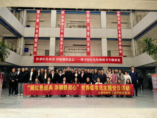 为服务学校“十五五”规划实施与申硕攻坚核心任务,深入推进学习型党组织建设,将东北抗联精神与钢铁文化深度融合,引导全体师生党员在书香浸润中筑牢信仰之基、锤炼钢铁党性、践行育人使命,4月22日,冶金与材料工程学院党总支以第31个世界读书日为契机,在图书馆一楼“红色阅览室”开展“阅红色经典 淬钢铁初心”主题党日活动。活动由院长孙野主持,党总支书记李巍致辞,全体正式党员参与。